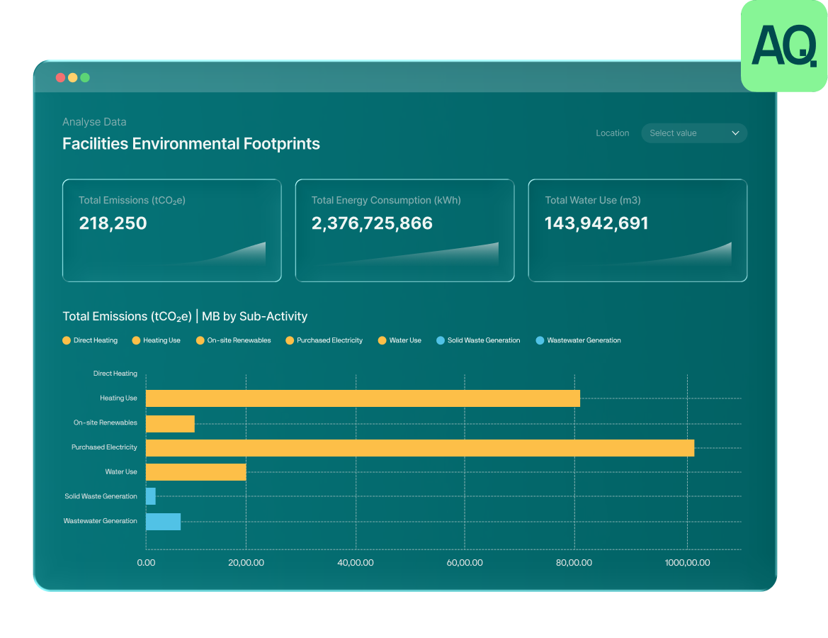 Click any number to see what's behind it – source data, emissions factors, methodology. Drill deeper by region, supplier, facility, or activity. Present live to the board and answer any question on the spot.